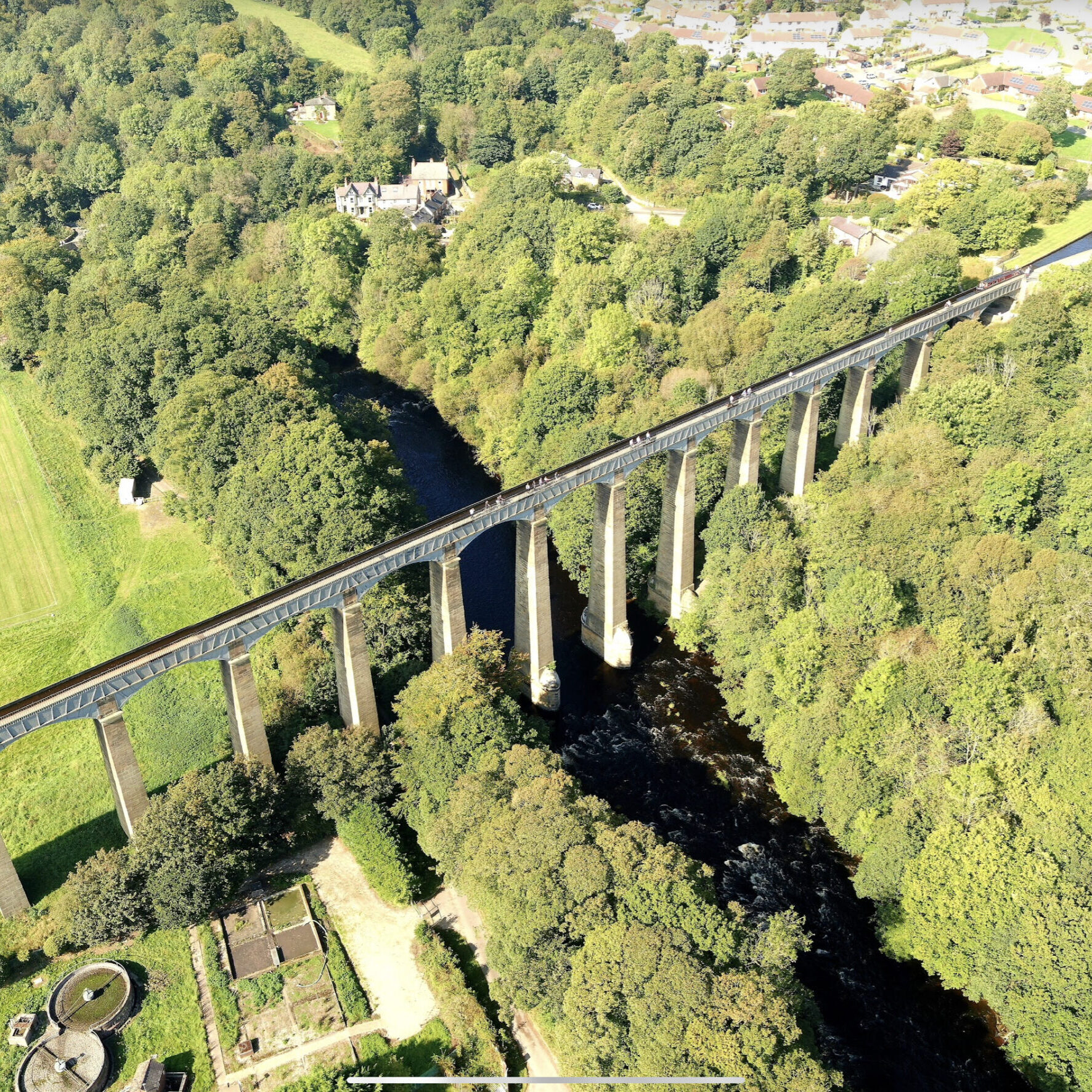 At just 12 ft (3.7 metres) wide and 336 yards ( 307 meters ) in length it is the longest aqueduct in Great Britain at 336 yards (307 metres). Standing 126ft (38 metres) tall it is also the highest canal aqueduct in the WORLD!